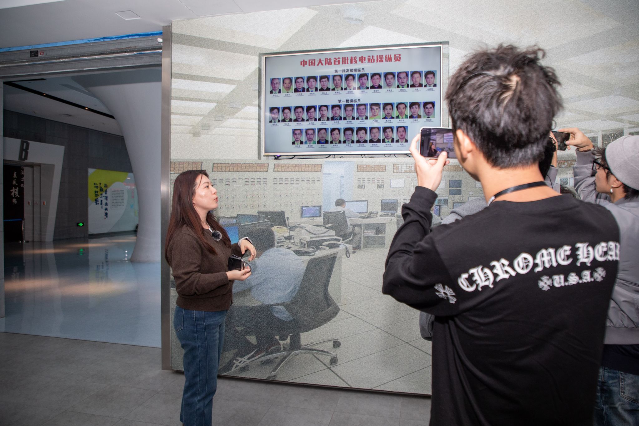 在秦山核电馆讲解老师的引导下,师生们开启了一场探寻中国核电发展史的“科技之旅”。馆内丰富的历史文物、精美的模型和先进的互动体验设施,全方位、多角度地展示了中国核电从无到有、从弱到强的“国之光荣”奋斗历程。师生们驻足于秦山核电站一期模型前,聆听“中国核电从这里起步”的创业故事;在核能知识科普区,通过生动有趣的互动装置,深入了解了核能发电的原理、安全性以及核技术在医疗、农业等领域的广泛应用。在这里,电气专业的同学们不仅拓展了专业知识,也感受到了作为“核电人”的光荣与伟大。